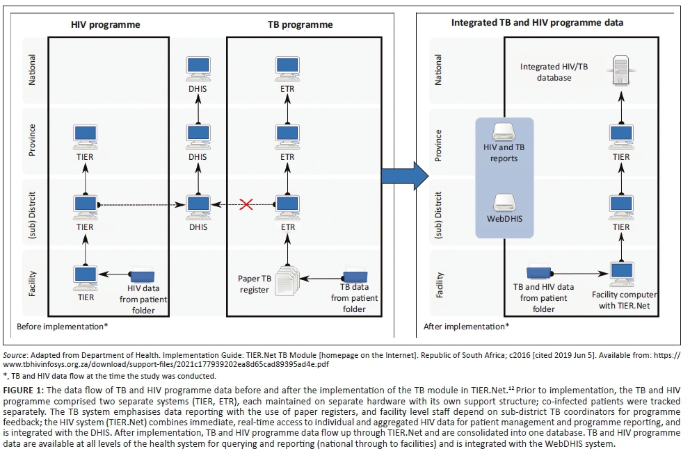South Africa is one of the first countries to pilot electronic TB data at facility level for programme monitoring. In order to facilitate the efficiency and effectiveness with which the register is implemented, it is critical that a process of change management occur alongside its continued rollout. This process must address the shift from a vertical to integrated health information system for the TB programme on one level, and on another, its particular integration with TIER.Net, the health information system used for monitoring and evaluating the South African HIV programme. While our findings in this study are largely context-specific, there are significant similarities across TB programmes as vertical or siloed surveillance programmes that could extend our findings' relevance beyond South Africa, particularly to contexts with comparatively high HIV and TB burdens.