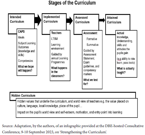 Where this happens in schools, it is impossible to teach the intended curriculum with the scaffolding of knowledge and skills through the FET phases of Grades 10, 11, and 12. There is, therefore, a total disjuncture between the intended curriculum and the curriculum that our learners have attained.