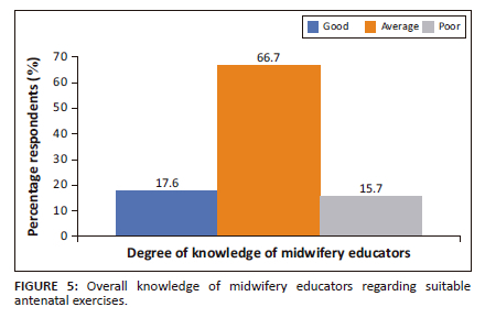 CONCLUSION: Midwifery educators have average knowledge of the ideal antenatal exercises, which prompts the development of an exercise programme to guide midwifery training and practice. Midwifery educators should collaborate with exercise specialists to teach and demonstrate antenatal exercises.