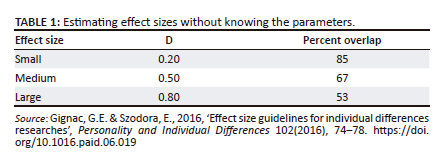 Gignac, G.E. & Szodora, E., 2016, 'Effect size guidelines for individual differences researches', Personality and Individual Differences 102(2016), 74-78. https://doi.org/10.1016.paid.06.019 [ Links ]