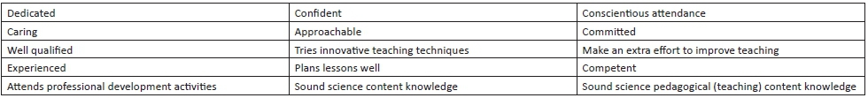 1. The following is a list that could possibly describe you as a teacher. Please select the ones that could be used to describe you as a foundation phase teacher teaching natural science. You could include others if you so wish. Write a short paragraph to explain your choice.