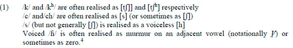 4 In response to a reviewer's query, let me emphasise that voiced [fi] plus a murmured vowel versus a murmured vowel alone are indeed perceptually differentiable. This is likely to relate to voice-onset-time and pitch differentiation, but for the time being is outside the scope of this paper.