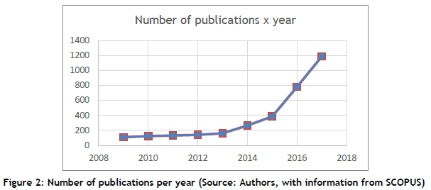 From the bibliographical research, and using only the keyword 'Industry 4.0', we noticed that the number of publications increased significantly in the years 2016 and 2017. In comparison, before 2013 the number of publications was less than 200.