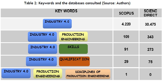 A systematic literature review was carried out using the SCOPUS and SCIENCE DIRECT databases. We used the keywords Industry 4.0, Production engineering, Skills, Qualification, Internet of Things, and Disciplines of production engineering. These keywords were defined by the authors because of their relevance to meeting the purpose of the article.