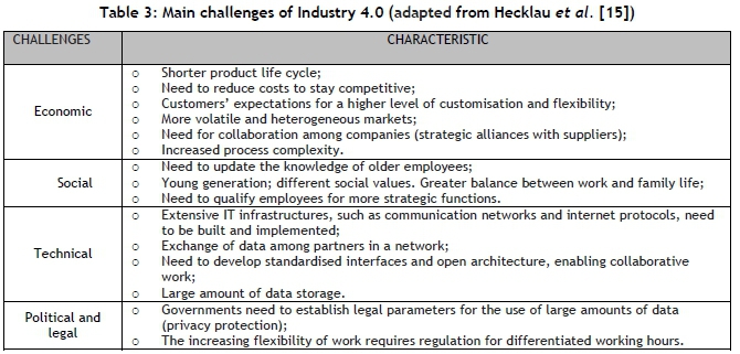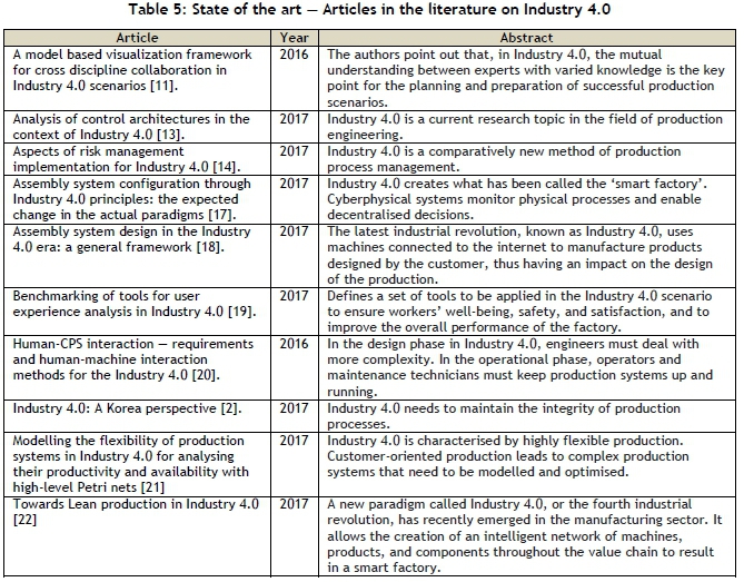 Table 5 verifies that the Industry 4.0 theme has been discussed in the scientific environment, and that the main discussion of these articles is focused on the characterisation of Industry 4.0.