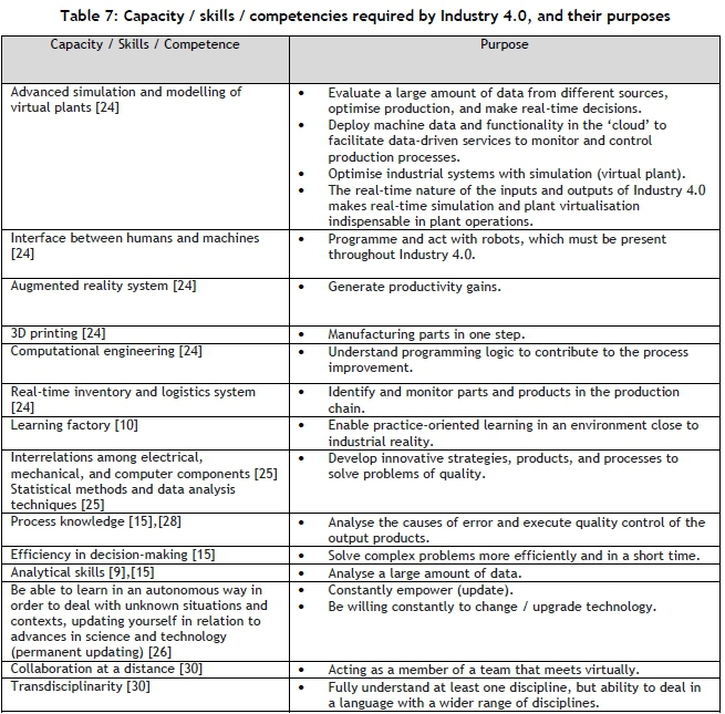 Several authors identify the themes, skills, abilities, and competencies required for Industry 4.0; these are summarised in the table below.
