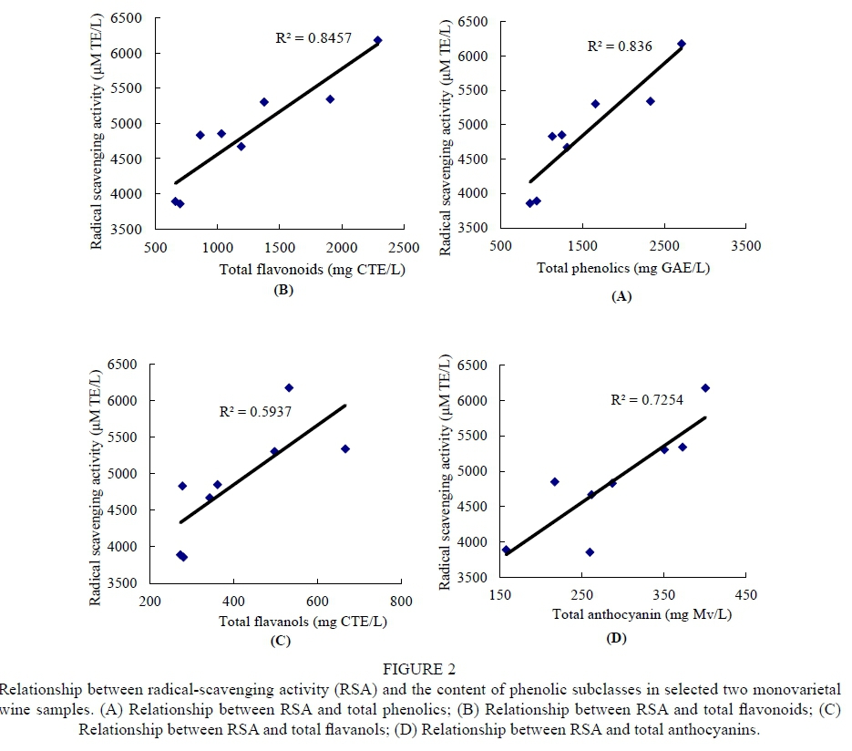 Correlation between radical-scavenging activity and phenolic subclasses in wine samples