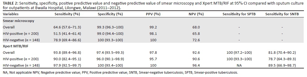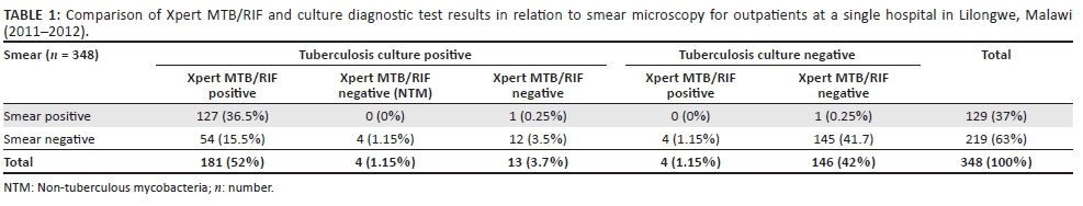 Performance of Xpert® MTB/RIF among tuberculosis outpatients in Lilongwe, Malawi