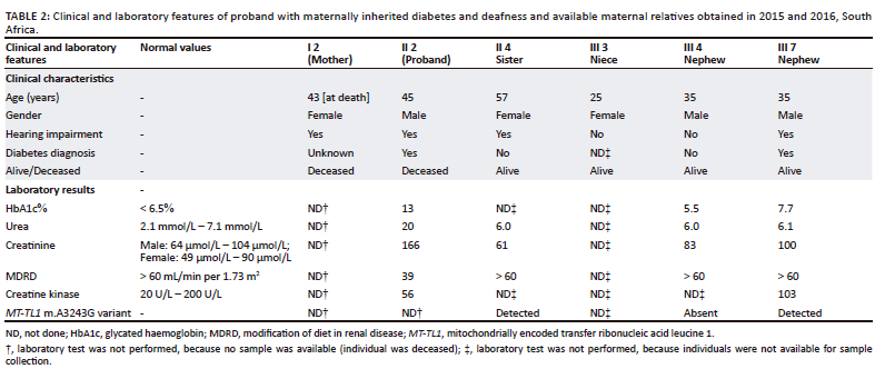 Maternally inherited diabetes and deafness with a variable presentation across three generations within a pedigree, South Africa