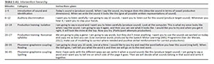 The researchers targeted each of the 19 South African English (Bekker, 2009) vowel sounds with a maximum of two vowel sounds covered per session. Twelve weekly intervention sessions were conducted. During every second intervention session, a single vowel sound was targeted. The intervention session concluded with revision of the vowels previously addressed. When no revision was conducted, two vowel sounds were targeted.