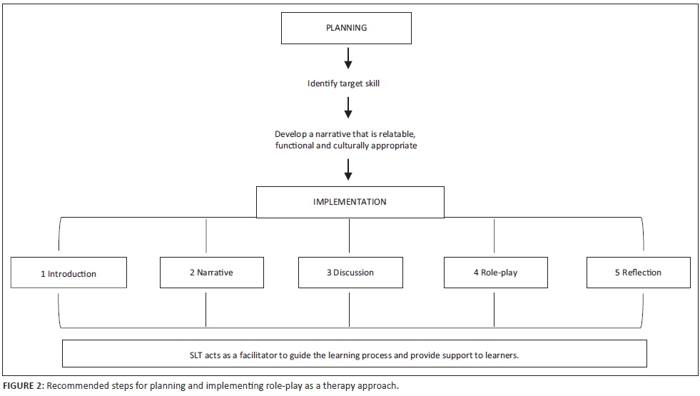 Speech-language therapists should seek evidence-based methods for addressing the pragmatic difficulties of learners with LLD. The findings of the study can be used to inform clinical practice and decision-making when implementing role-play intervention. Therapists should be aware of and implement all the components of a role-play session. Appropriate knowledge of the process of active learning will ensure maximum benefit being derived from role-play. Therapists should also be aware of using narratives that are relatable, functional and culturally appropriate. Strategies to support and ensure the participation of weaker learners, such as peer learning, should be supported during role-play intervention.