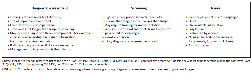 Triage versus screening versus diagnostic assessment for dysphagia in a resource-constrained context such as South Africa
