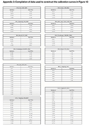Since 2009 a number of results from experiments using the DSA and SFA calibration methods have been published, and the equations for the trend lines are listed against the source of the data in Table X. Also shown in Table X is a list of the R2 values for the fit of the trend lines to the data. The behaviour of the data-sets that have been accumulated, and which are listed in Appendix 3, is reviewed.