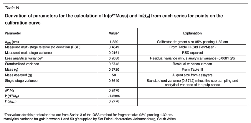 This equation has been used as a method for defining the calibration curves from which values of αand K can be determined. These values are essential in order to compile sampling nomograms for specific ore types from which a sampling protocol can be designed (Minnitt, Rice, and Spangenberg, 2007; Minnitt and Assibey-Bonsu, 2009; Minnitt et al., 2011).