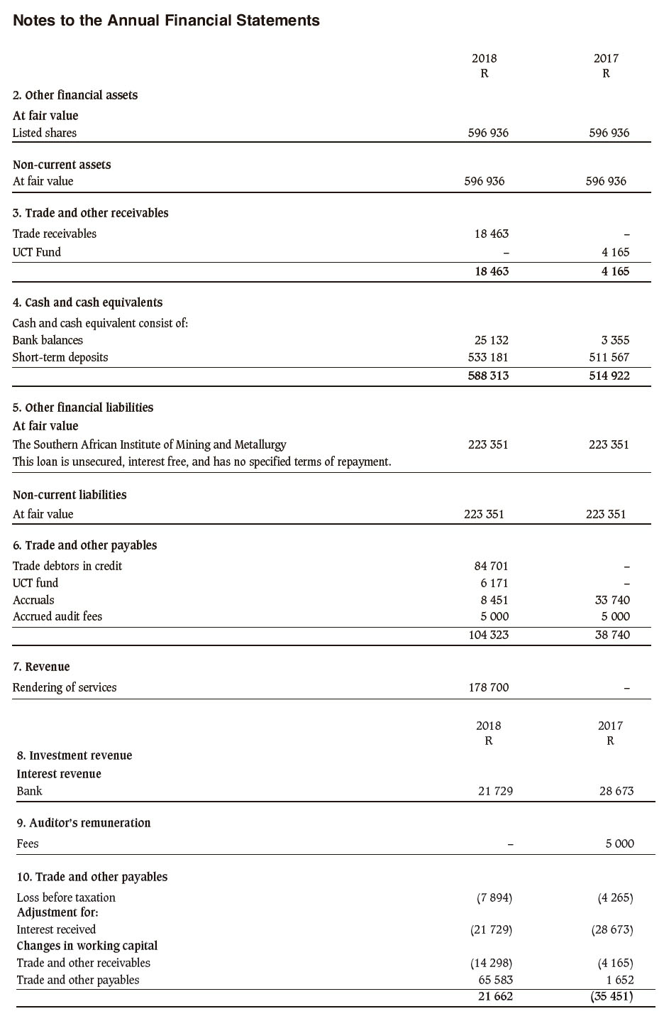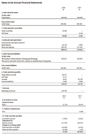 We were engaged to audit the annual financial statements of The Southern African Institute of Mining and Metallurgy Western Cape Branch set out on pages 991-996, which comprise the statement of financial position as at 30 June 2018, and the statement of comprehensive income, statement of changes in equity and statement of cash flows for the year then ended, and notes to the annual financial statements, including a summary of significant accounting policies.