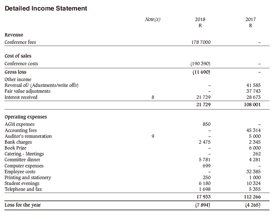 The Southern African Institute of Mining and Metallurgy Western Cape Branch. Annual Financial Statements for the year ended 30 June 2018