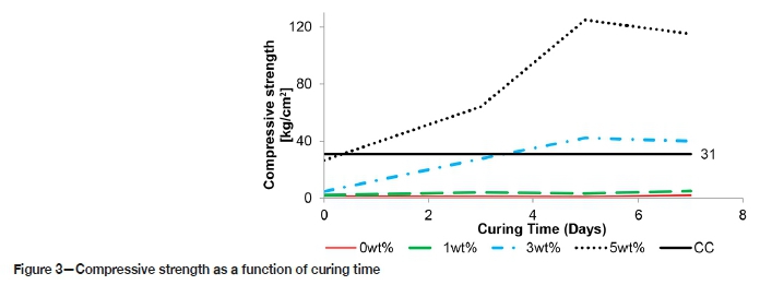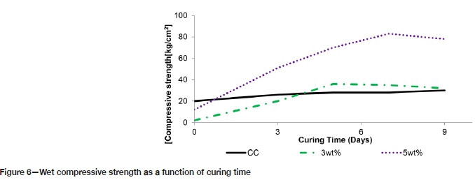 Figure 3 shows the briquette compressive strength as a function of curing time.