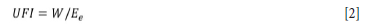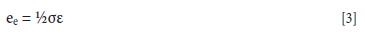 Where Ee is the retained strain energy (elastic strain energy), and Ep is the dissipated strain energy. Both values are determined from elastic hysteresis loop parameters found in uniaxial compression loading and unloading tests.