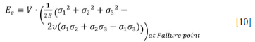 Substituting Ee and W from Equations [12-15] in Equation [2], a new criterion, Equations [16-17] is obtained, which indicates the areas susceptible to the onset of unstable failure in rock.