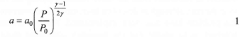 The temperature, T0, and pressure, P0, at the upstream test section were measured before wave arrival in the initially stagnant air, and the sound speed, a02= γRT0, calculated. The static pressure variation with time was then used with the isentropic relationship to determine the variation in sound speed.