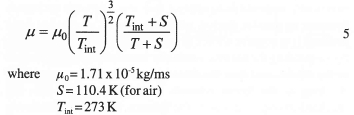 The viscosity may then be established from the Sutherland Law16.