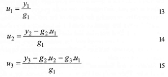 This is an inverse problem since gi-j and yj are known and uj needs to be determined. Unfortunately real data always has noise and is recorded using an analogue to digital converter. Solving the inverse problem amplifies noise and the steps introduced by the converter. Thus a polynomial is first fitted to the data and the smoothed data deconvoluted. The equations may be rearranged to solve for ui as follows: