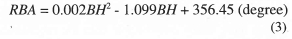 Characterising the various quantities given in table 1, the most significant was in relating bend height (BH) to bend angle or reverse bend angle (RBA) - see figure 6.