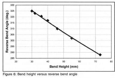 The equation that best describes this relationship indicates that when bend height tends to zero, reverse bend angle tends to 360° (or bend angle tends to 0°). This would imply that a circular shaped component could be produced.