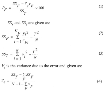Is the percentage contribution, which reflects the portion of the total variation observed in the experiment ascribed to a factor. A factor with higher percentage contribution to a state variable indicates that the state variable is more sensitive to that factor. The calculation of percentage contribution of a factor is given as10: