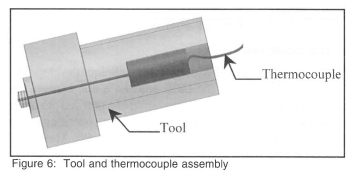A 0.5 mm diameter embedded thermocouple probe (type K) was fitted into the 0.7 mm diameter hole inside welding tool for measuring the interface temperature between the tool pin and shoulder. Thermal paste with a high thermal conductivity was also applied on the probe to ensure good contact between the probe and tool interface8, as illustrated in figure 6.