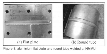 Figure 8 shows the experimental samples welded at NMMU.