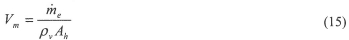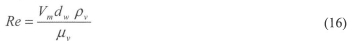 where ṁe is the mass flow of the vapour butane exiting the nozzle, ρv is the density of the butane in the accumulator and Ah is the total area through which the butane can flow in each mesh disc. With the velocity of the fluid through the mesh known the Reynolds number can be calculated using: