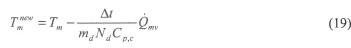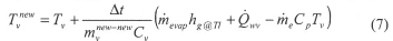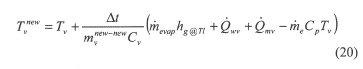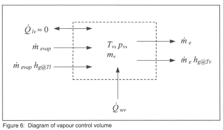 The new temperature of the butane vapour is calculated using equation 6.41, only now the heat transfer from the mesh to the butane vapour is added. So, equation 6.41 now becomes: