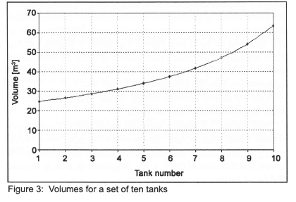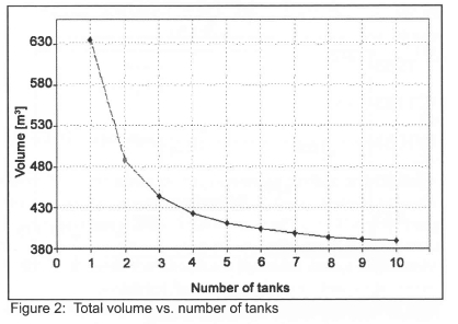 Table 2 shows that the total volume and individual tank volumes become progressively smaller with increasing number of tanks. Figure 2 illustrates further.