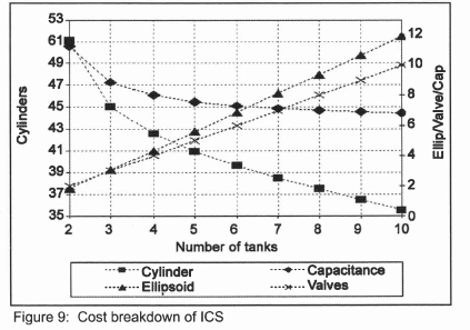 Figure 8 shows the cost breakdown of the ICS. Initially the total cost of the ICS is dominated by the cylindrical component. However since the cylindrical component becomes shorter with more tanks, its contribution to the total cost is progressively less.