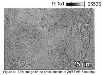 The most common thermal sprayed materials are zinc, aluminium and their alloys. Zn-Al alloys have an excellent corrosion behaviour in combining the special advantages and characteristics of pure zinc and aluminium, reported by He2. While zinc in the spraying layer takes care for the active corrosion protection of steel, aluminium provides the passive protection against corrosive industrial or maritime atmosphere. Zn-Al coatings have the advantage of better mechanical characteristics compared with pure zinc coatings. Salt spray tests under simulated maritime atmosphere show that Zn-Al coatings provide better protection against corrosion than layers with pure zinc or aluminium. In addition, layers made with Zn-Al coatings showed excellent corrosion protection resistance in an S02 industrial atmosphere.
