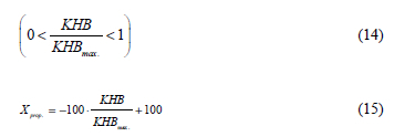 because KHB becomes greater than KHBmax, which can have only the value of the accumulated intervals. Equation 9 indentifies the range in which equation 10 will be used to calculate the probability between 0 and 100% with the assumption of linear dependency.
