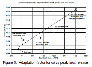 The results from the pre investigations showed that an additional adaption factor is necessary to adjust the value of the angle ap. This adaption factor is linked to the peak heat release measurements at different calibration levels and conditions during start. Four points were investigated in detail to obtain such appropriate adaption factors. These points are: