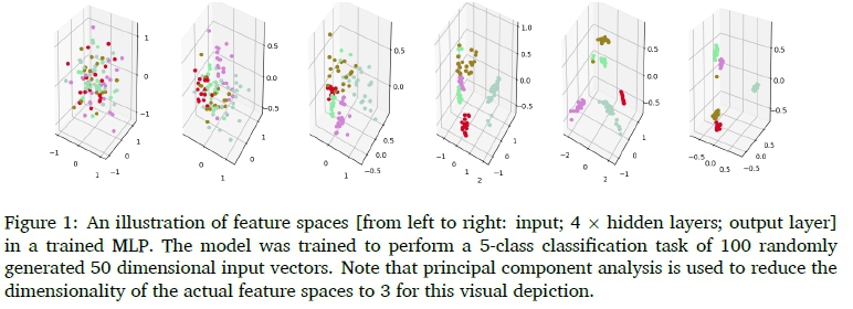 1. Hidden layers represent sample information in a feature space unique to every layer.