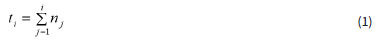 I. At each comparison, the number of cases xi > xj is counted and indicated by ni, where xi (i=1,2,...,n) and xj (j=1,2,...,n) are the sequential values in a series, respectively.