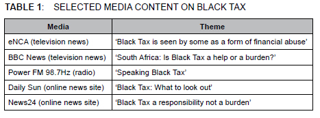 Media framing of 'Black Tax' in South Africa