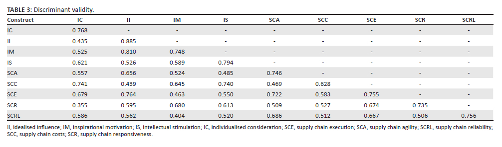 Generalisation of the study to other environments is limited because the primary data used in the study were gathered in only three South African provinces (Free State, Gauteng and North-West). A qualitative or mixed-methods approach may be applied in future studies to obtain a wider range of results. The study may also be extended to larger corporations, as the constructs used in this research are all applicable and pertinent to businesses of different sizes. Future studies could also test the impact of other leadership practices such as distributed, servant and contingency, among others on SCM in different economic sectors.