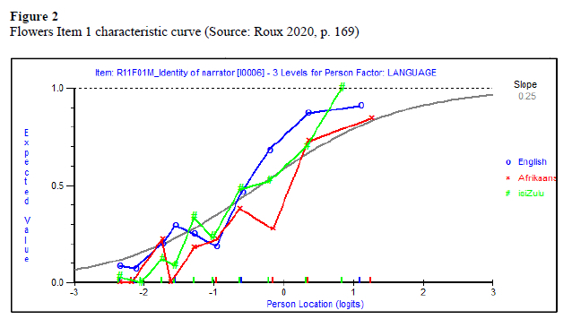 The descriptive findings showed that, overall, the South African Grade 4 students struggled with most of the Flowers on the Roof items. Across the three languages, the majority of students were not able to provide correct answers for the items. A deeper analysis indicated that five of the 13 items displayed differential functioning. However, the findings of the Rasch analysis showed that the isiZulu students found Item 5 easier but Afrikaans and English students did not, and that English students found Item 9 less difficult than did Afrikaans or isiZulu students. There were also items that displayed extreme inconsistency across the three languages, which did not follow the model curve. If the Flowers on the Roof text had been unfair in one of the three languages, the above kind of variation would not have occurred.