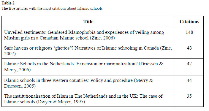 From Table 2 and 3, the divergence in focus between articles related to Islamic schools and those dedicated to MI is evident. The top-cited articles on Islamic schools revolve primarily around societal topics such as Islamophobia, policy considerations, and the broader socio-cultural landscape in which these institutions operate. The lived experiences of Muslim students in Western countries, shedding light on the complex interplay between religion, identity, and schooling (Islam & Mercer-Mapstone, 2021). Their high citation count suggests the resonance of these issues in the academic community and the larger society (Ramadan, 2009). Conversely, the most cited articles on MI are dominated by Gardner's (1983) foundational work and several other studies, primarily those by Furnham (2001) and Furnham et al., (2001, 2002), that discuss cultural and gendered perspectives on self-estimations of intelligence. These studies underline the global intrigue about MI, not just as a theoretical construct but as a lens through which cultural, societal, and gender dynamics are examined (Nisbett et al., 2012). The glaring absence of intersecting articles between MI and Islamic schools raises intriguing questions. This gap suggests that the discourse on MI has been largely confined to a secular or non-religious educational context. The rich fabric of pedagogical practices in Islamic schools, often a blend of traditional religious teachings and contemporary education methods, might be engaging with MI in ways yet to be documented or analysed extensively in academic literature (Kadi, 2006).