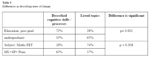 In general, we found that teachers who described changes in terms of topics had only 13 years of experience, while those whose descriptions included cognitive processes had on average 18 years of experience of teaching mathematics.