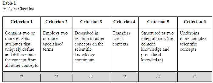 Drawing on the principles of what constitutes a scientific concept, Morris et al., (2016) developed a conceptual framework to define a simple scientific concept. According to this framework, a simple scientific concept must contain two or more essential attributes (specialised terms that have universally accepted definitions) that are part of an ordered hierarchical knowledge system within which concepts are systematically interrelated and transferable across different concepts. A simple scientific concept should also contain two essential factors: content knowledge (knowledge about the topic being taught); and procedural knowledge (the mental activities and processes linked to acquiring content knowledge).